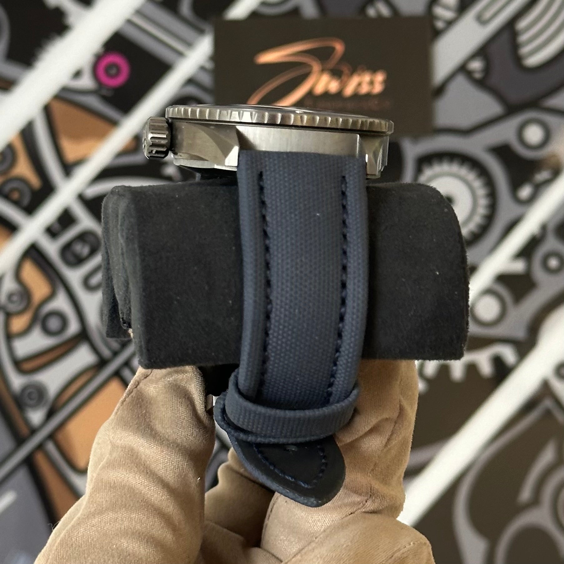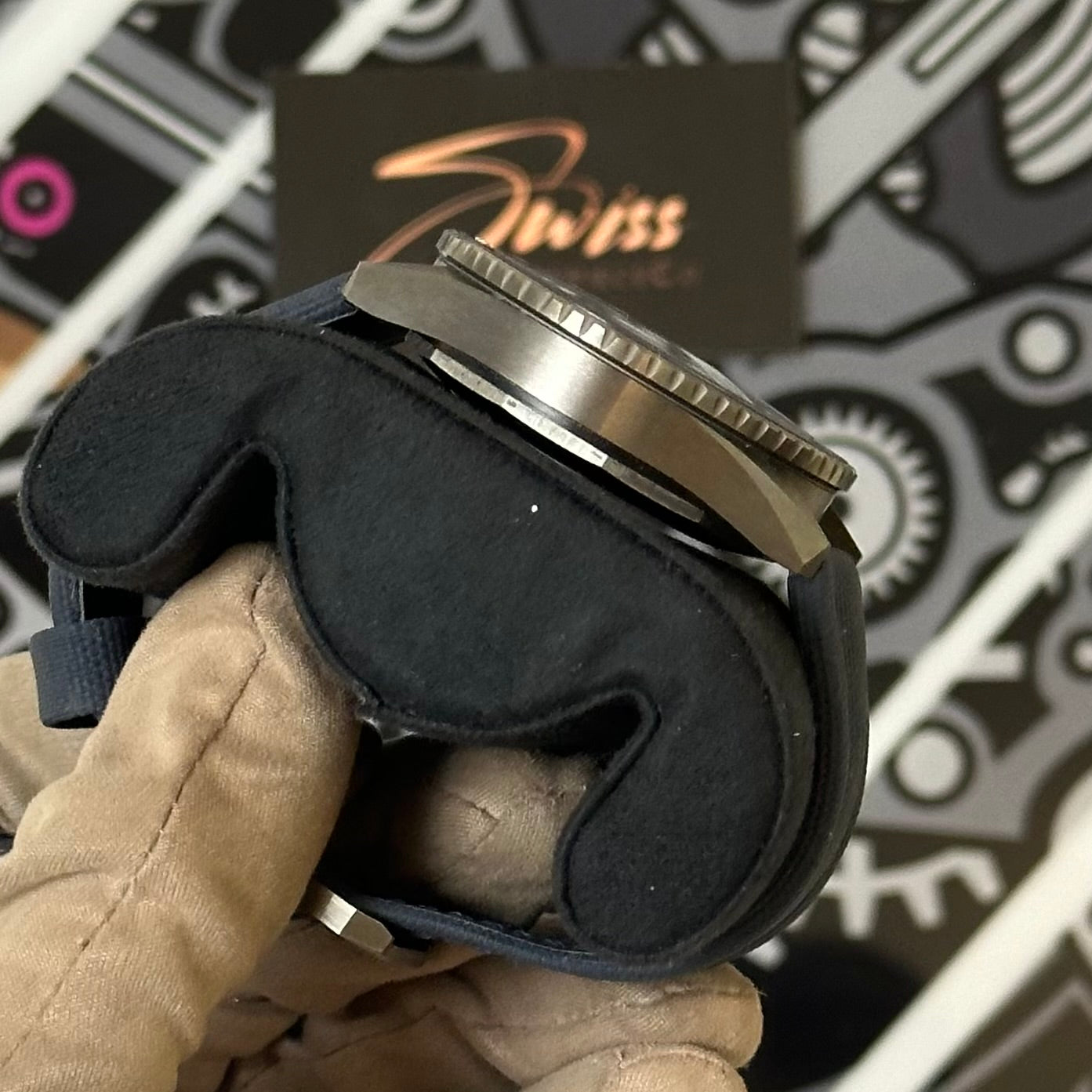 The watch is in preowned condition with minor signs of wear on the metal. The crystal and dial are both clean. The strap is in good shape.