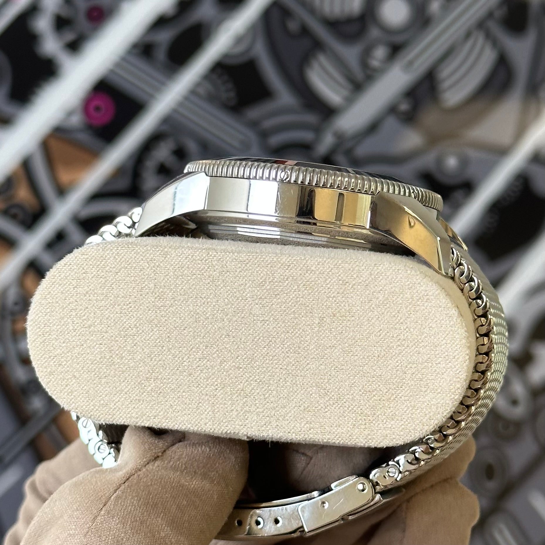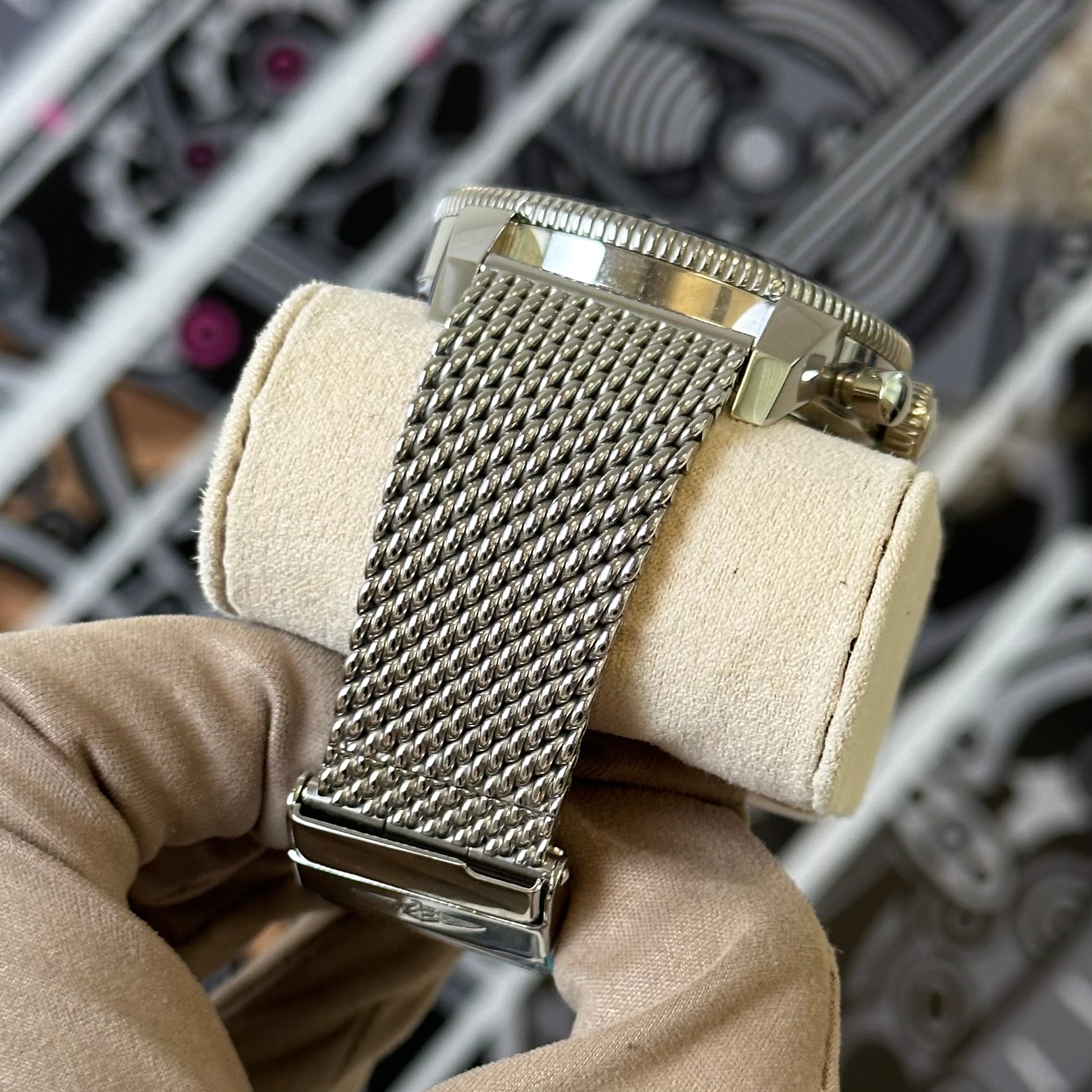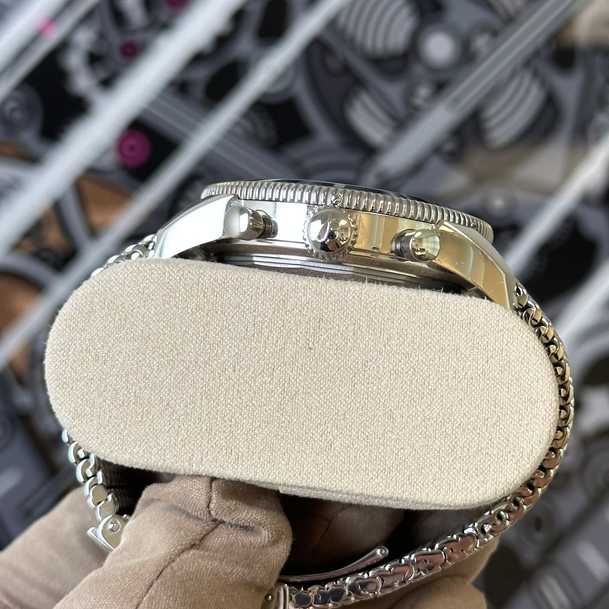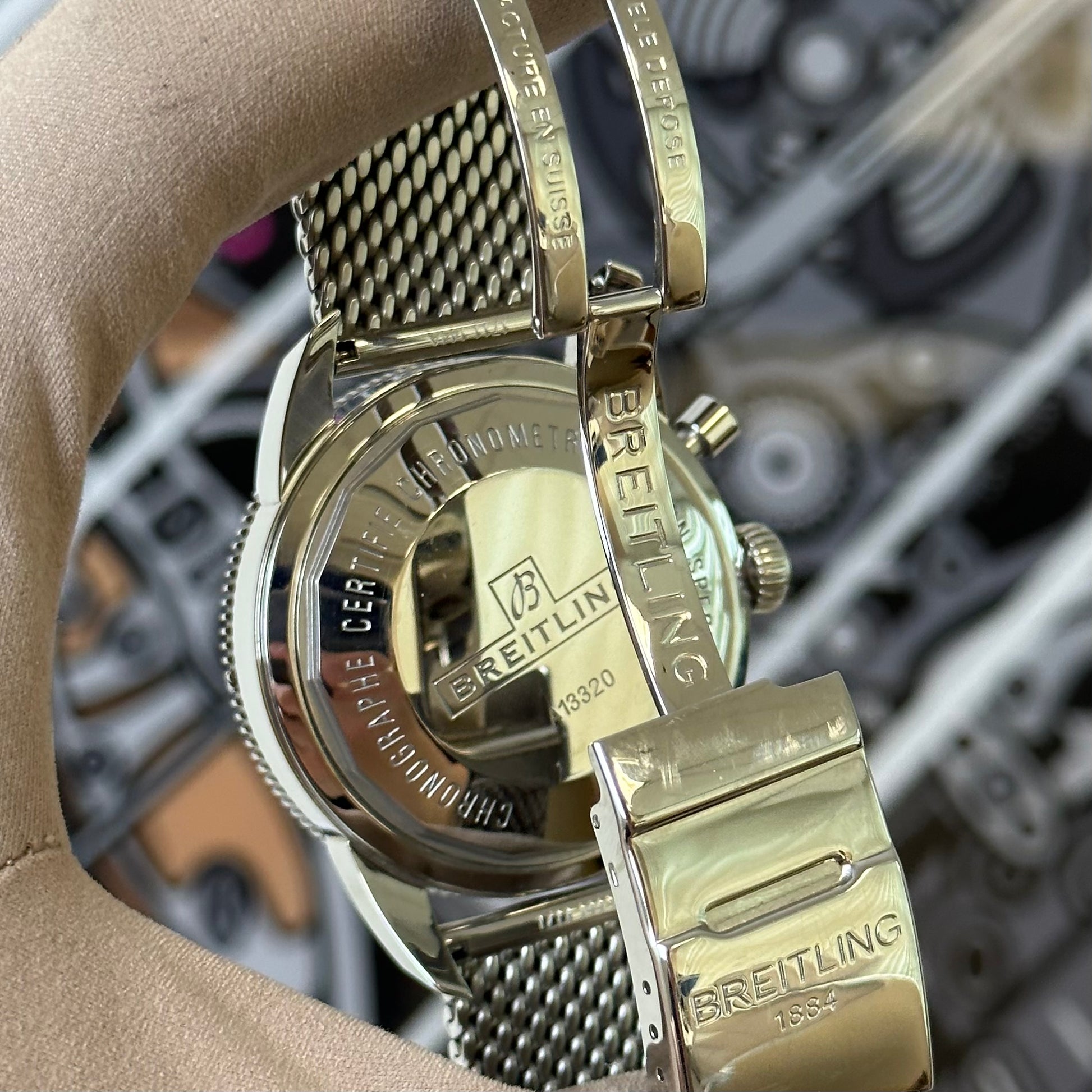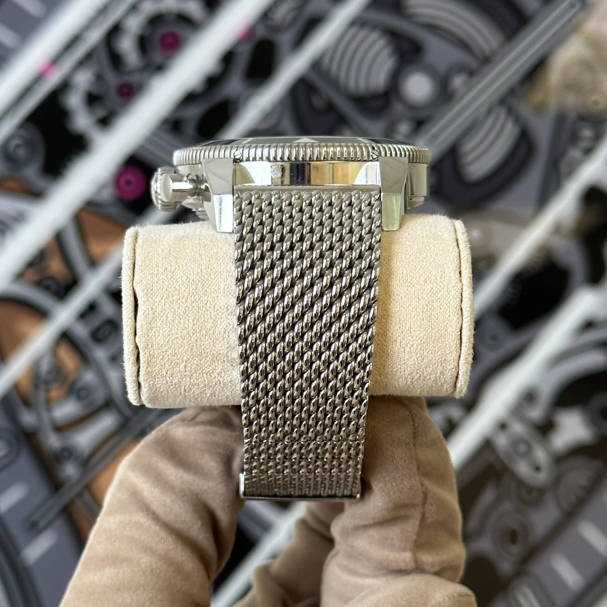 Mild amount of scratch marks on the case sides. The crystal is clean. The Chronograph functions as it should and resets back to center. Watch keeps time great.