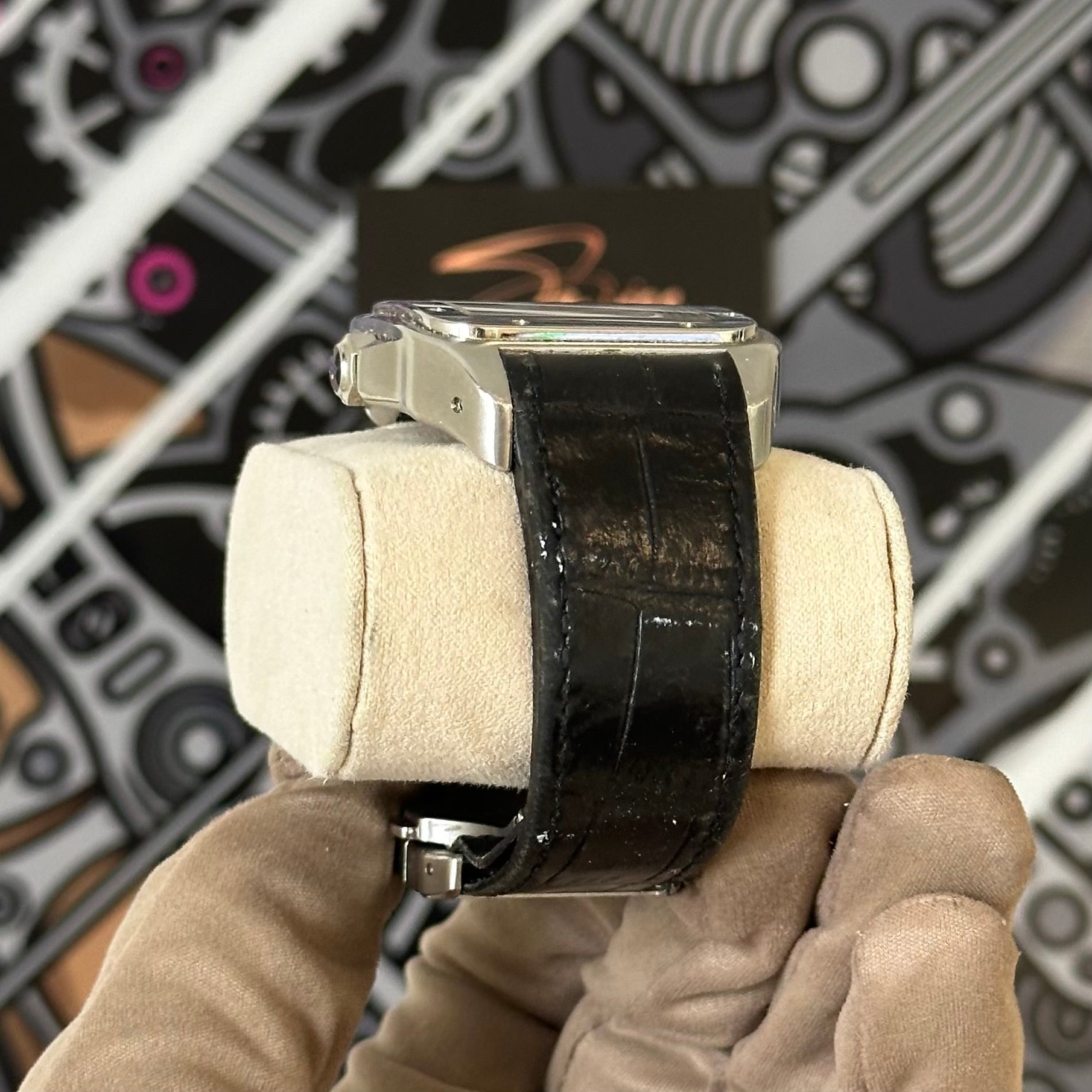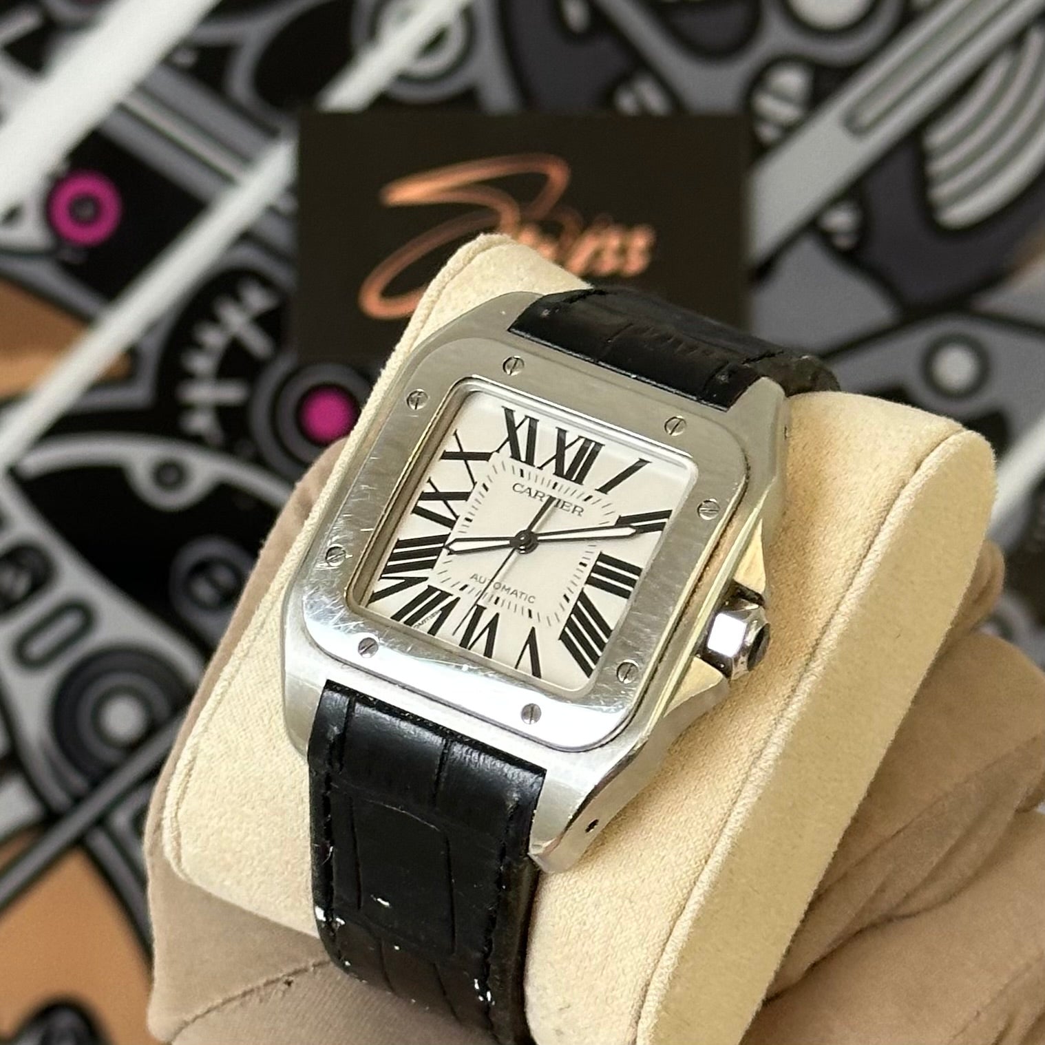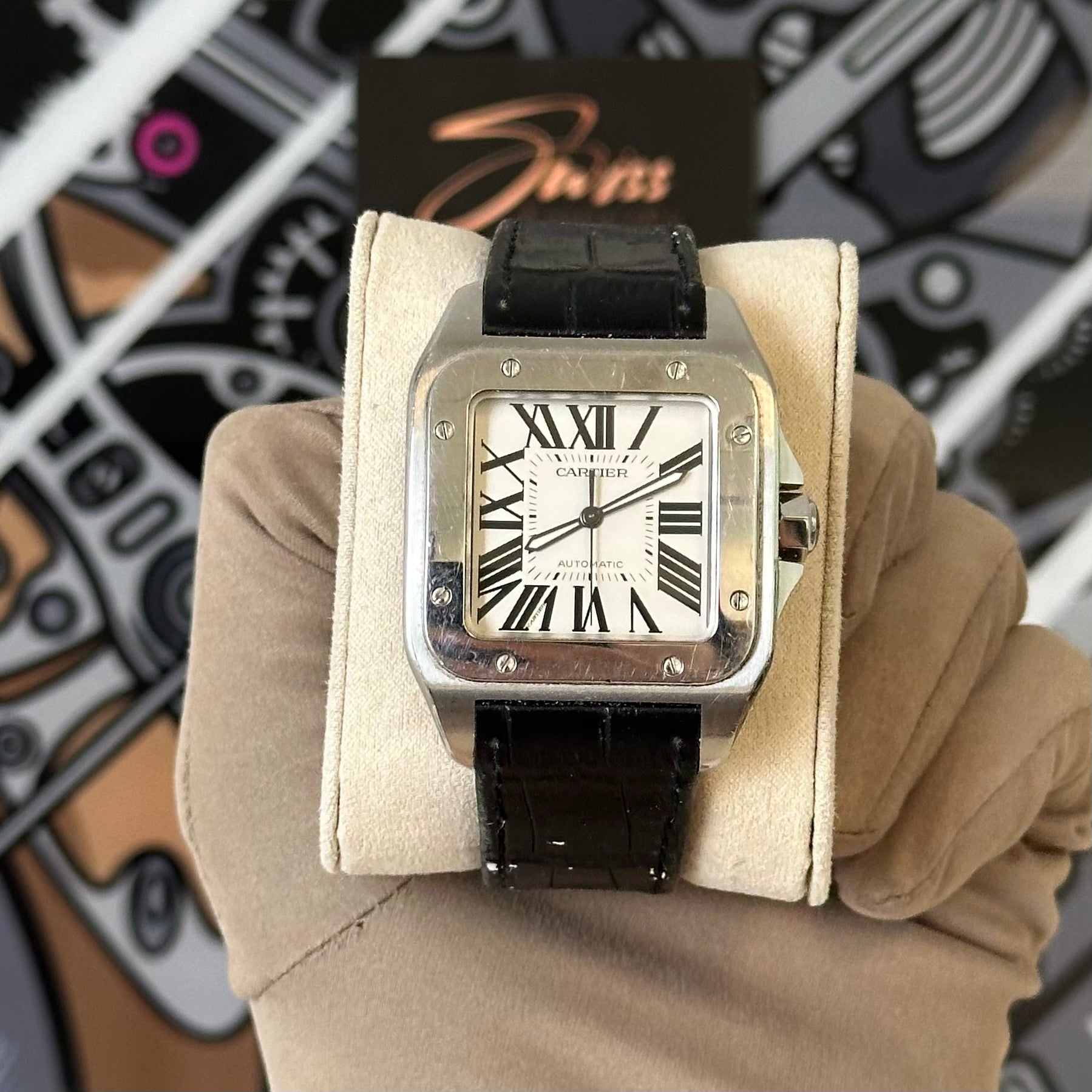 The watch has heavy signs of wear on the case and bezel. Could use a polish to bring it back to excellent condition. The crystal and dial are both clean. The leather strap is in decent shape, also shows signs of wear.