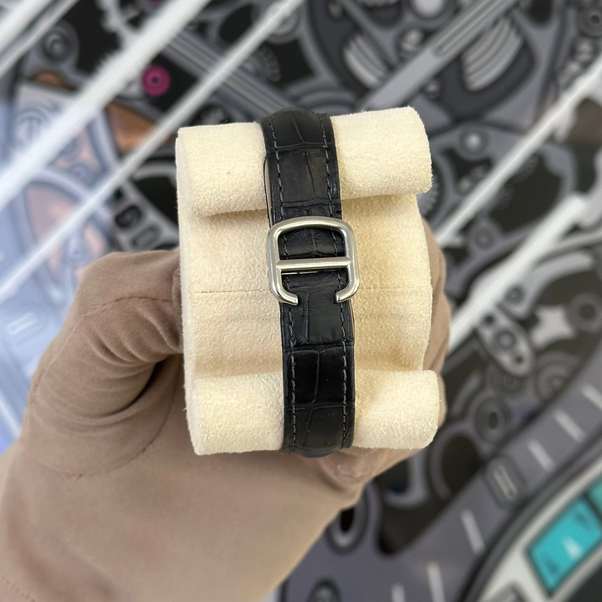 The watch is in pre-owned condition with moderate signs of wear on the case. The crystal and dial looks clean. The strap shows signs of wear.