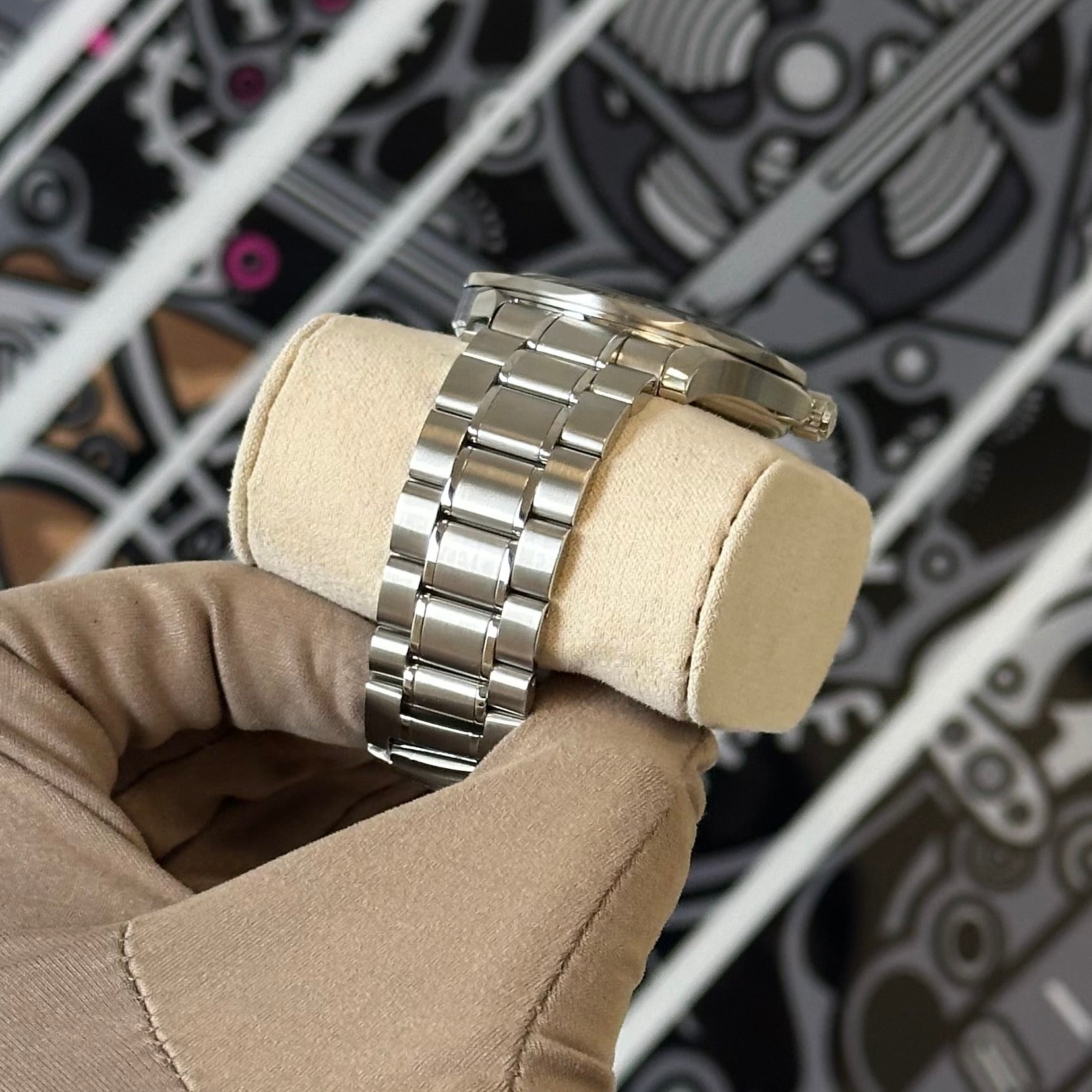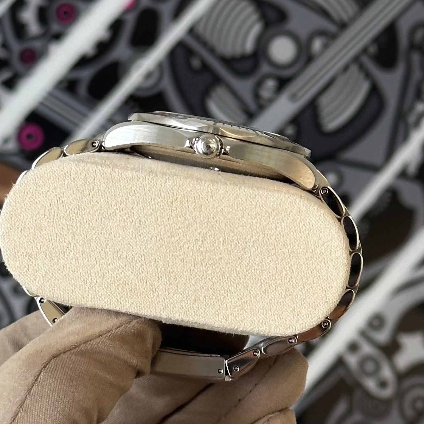 The watch is in preowned condition with minor signs of wear on the case sides and on the bracelet/clasp. The crystal and dial are both clean.