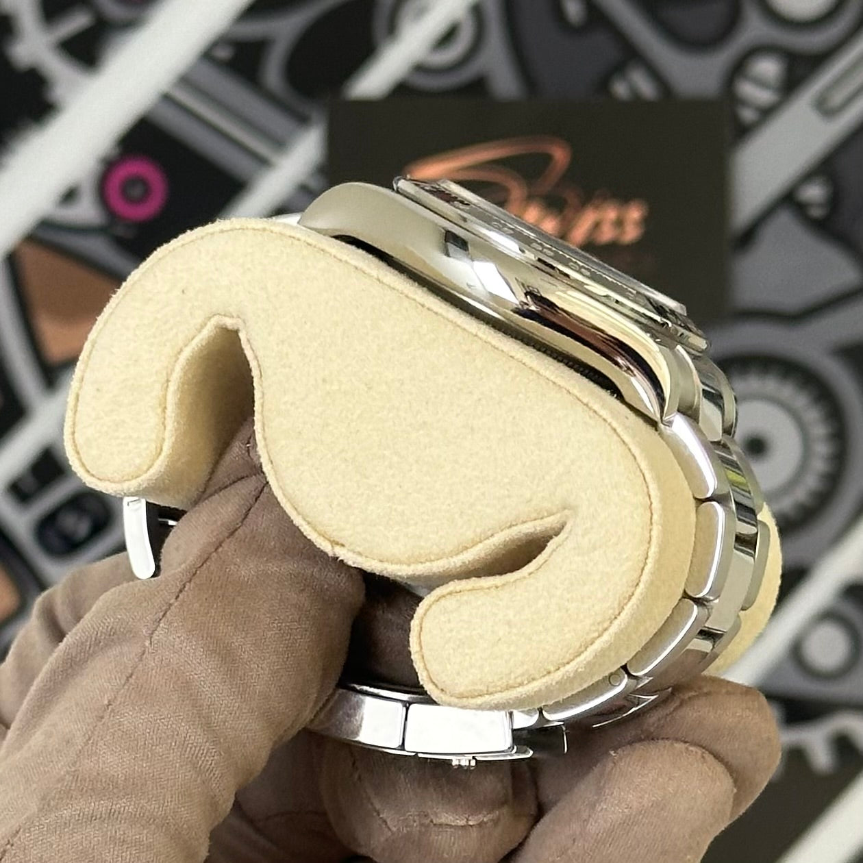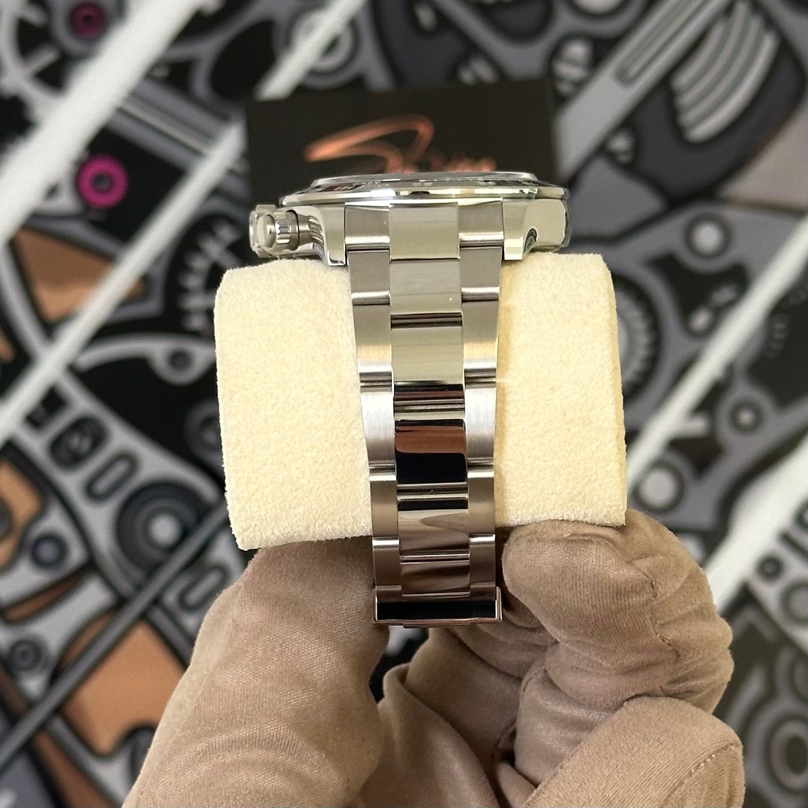 The watch is in overall great condition. Some minor marks on the clasp and some fine lines on the bracelet. The crystal and dial are both clean.