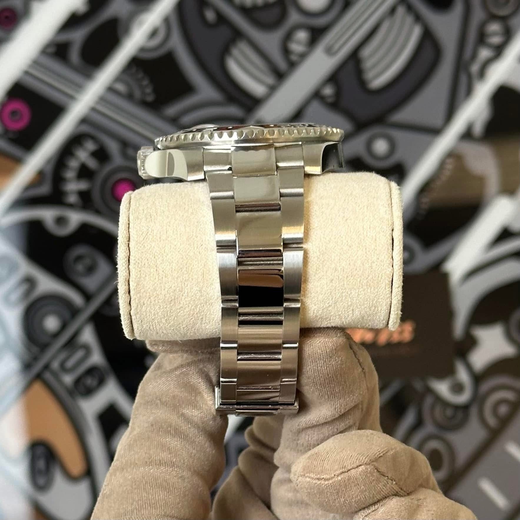 The watch is in preowned condition with moderate amount of surface scratches on the side of the case, bracelet and clasp.