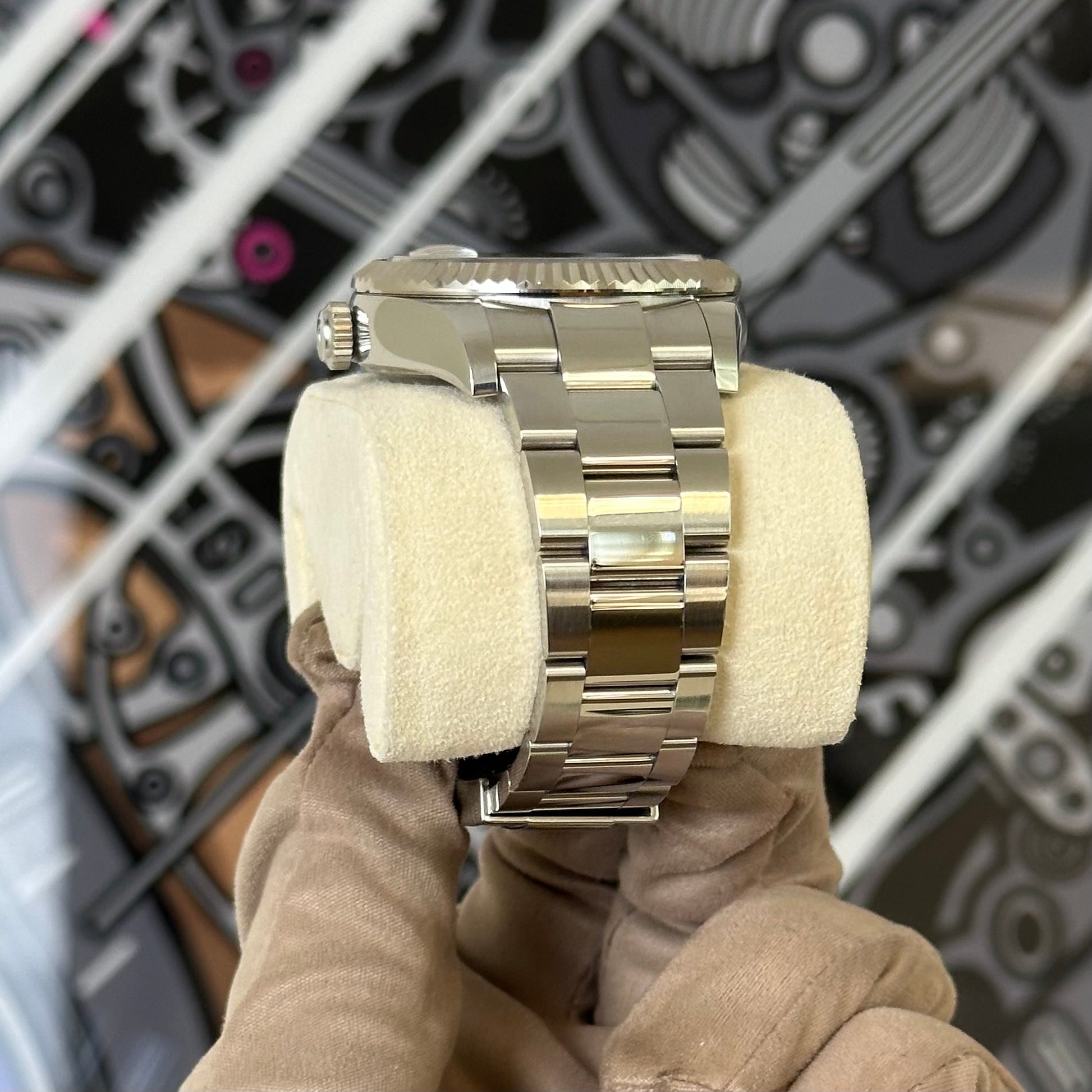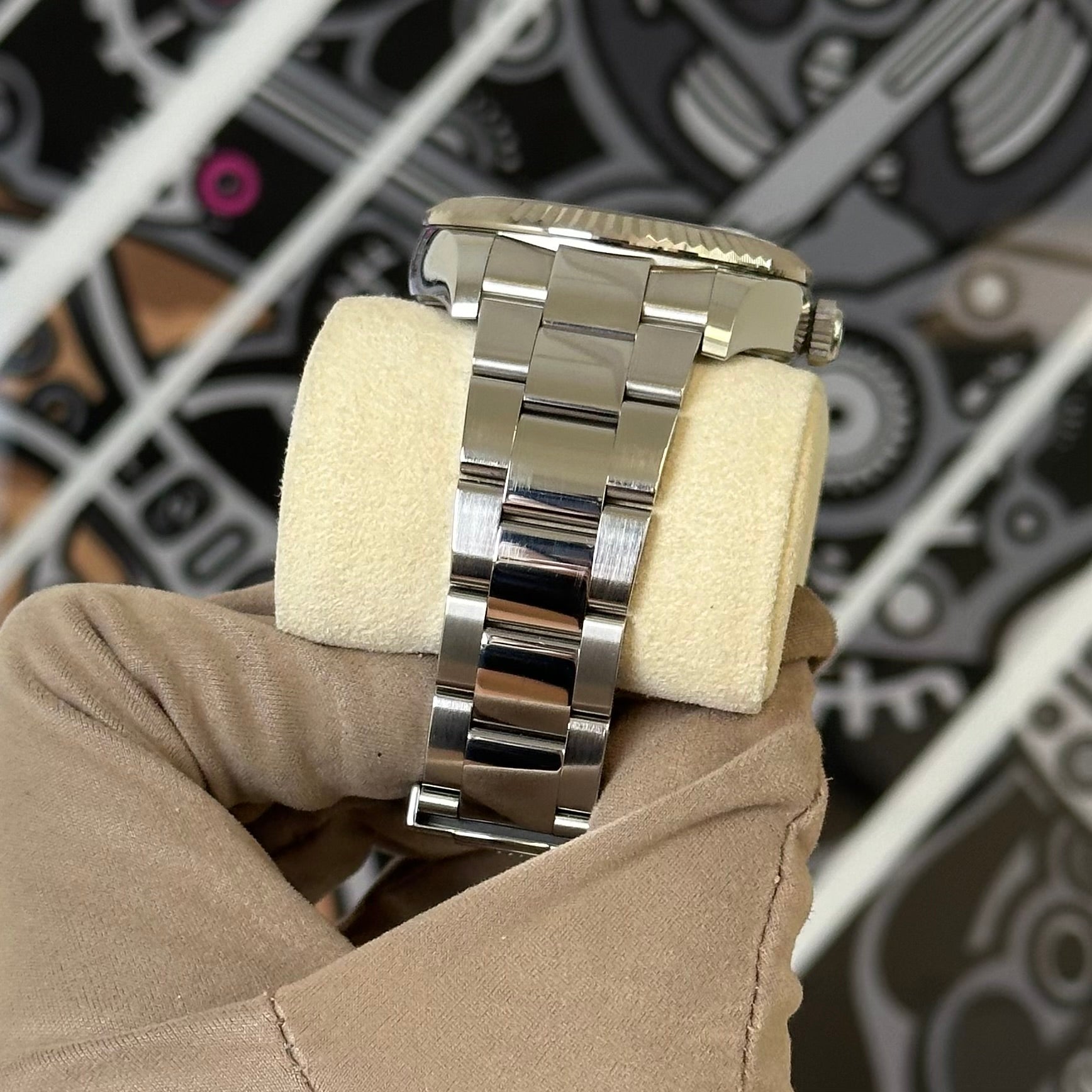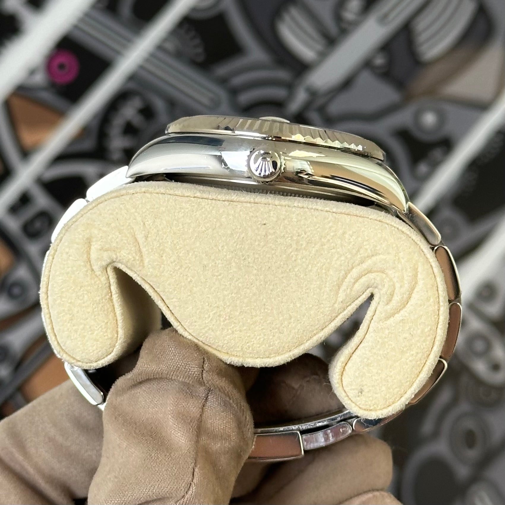 The watch is in pre-owned condition with mild to moderate amount of marks on the case sides and on the bracelet. Theres a small mark on the crystal by 7 o clock