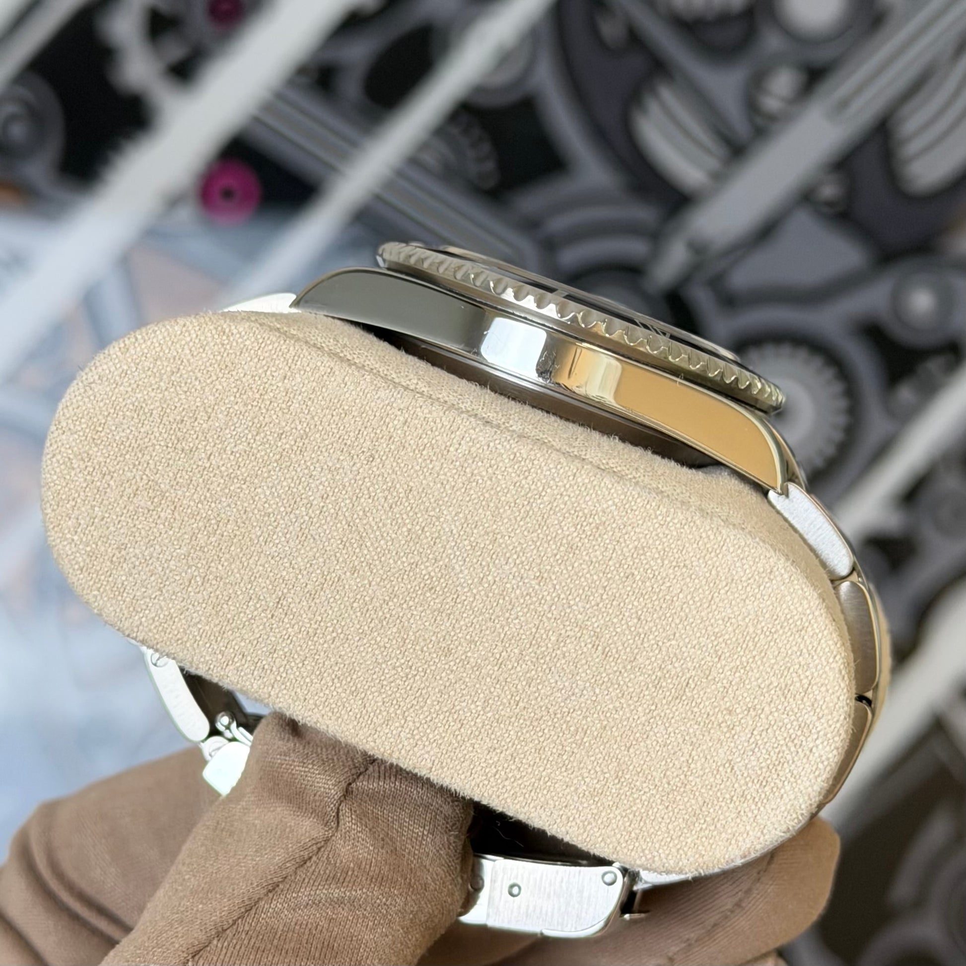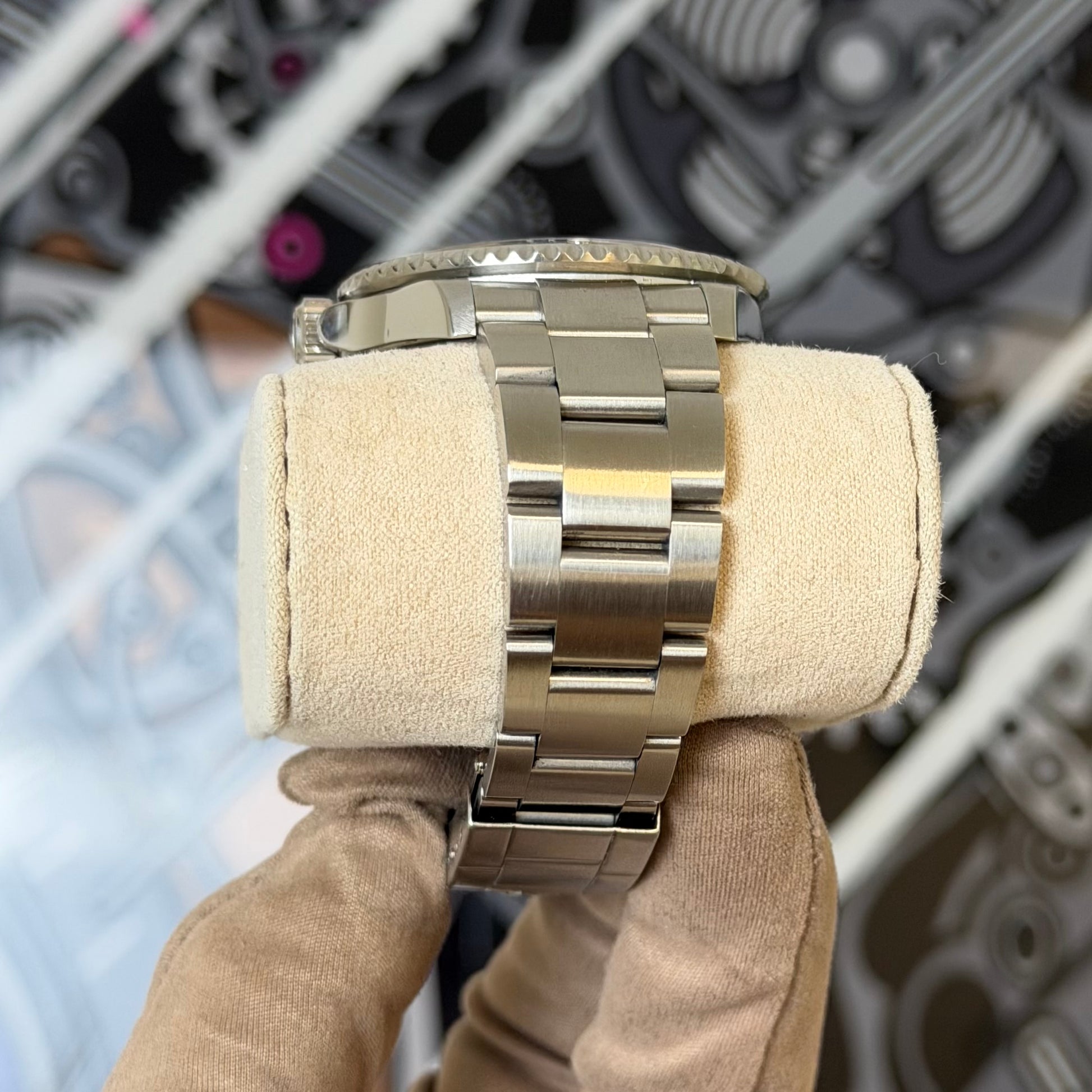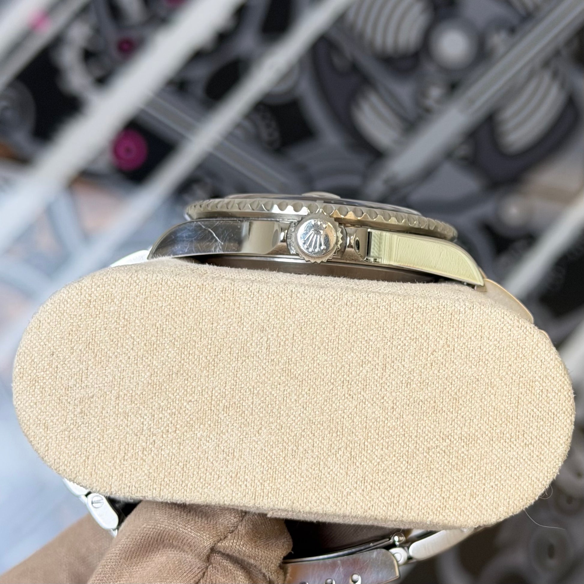 The watch is in preowned condition with mild to moderate amount of scratches on the case sides. There are scratches present on the bracelet and clasp. The cyclopes has a tiny mark that is barely visible.