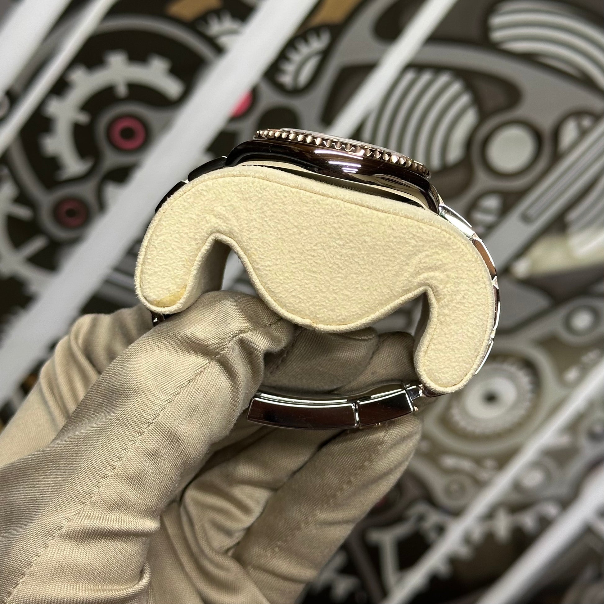 The watch is in pre-owned condition but overall in good shape. There are some light marks on the bracelet and clasp. The crystal and dial are both clean.
