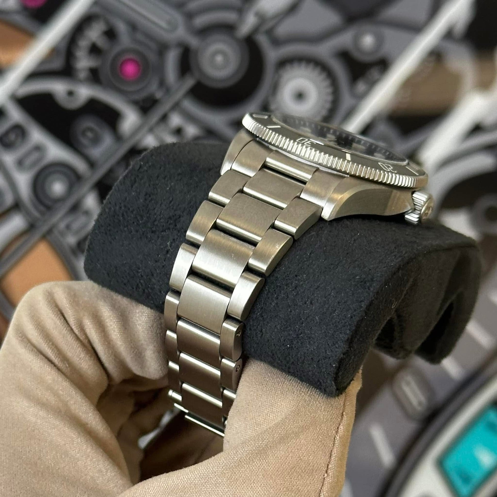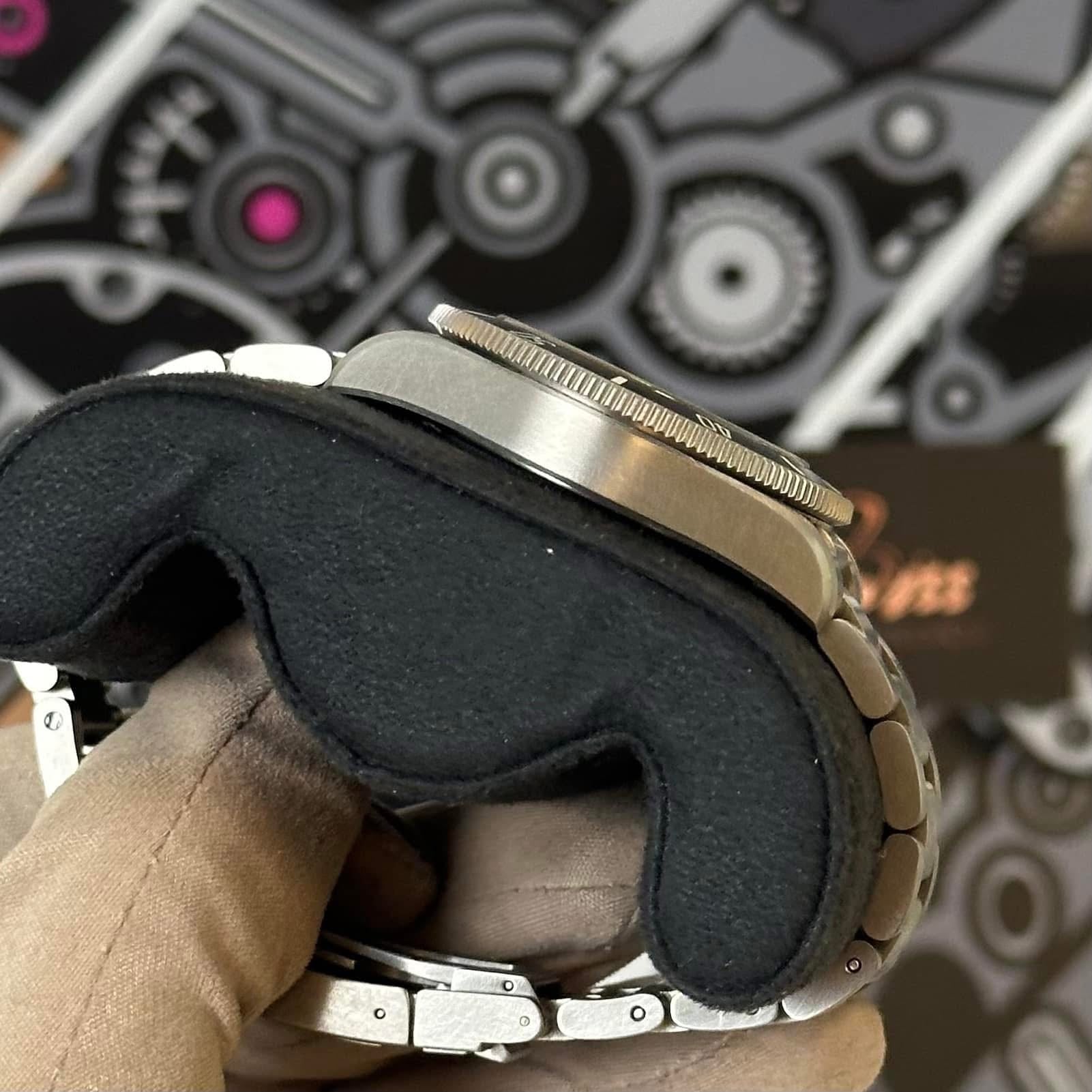 The watch is in preowned condition with mild scratches on the case sides and on the bracelet. Moderate amount of scratches on the clasp. The crystal and dial are both clean.